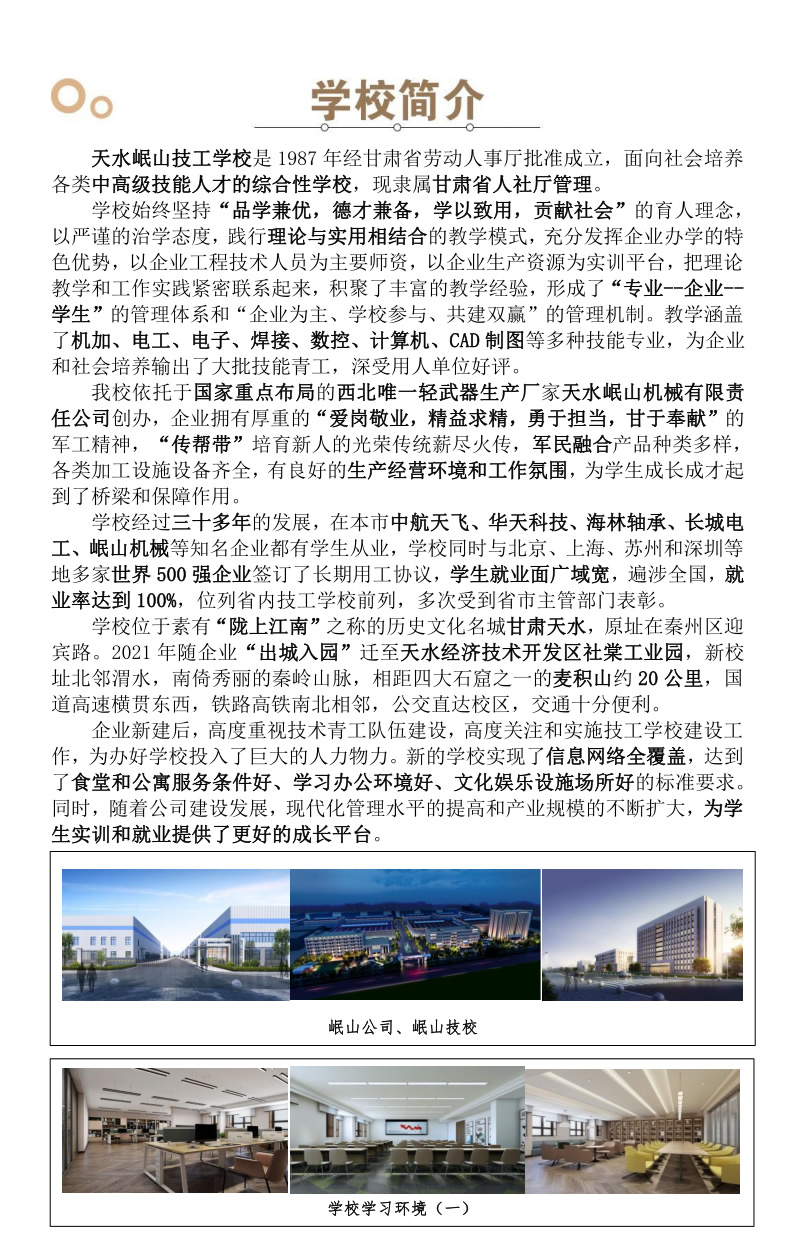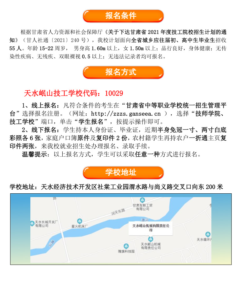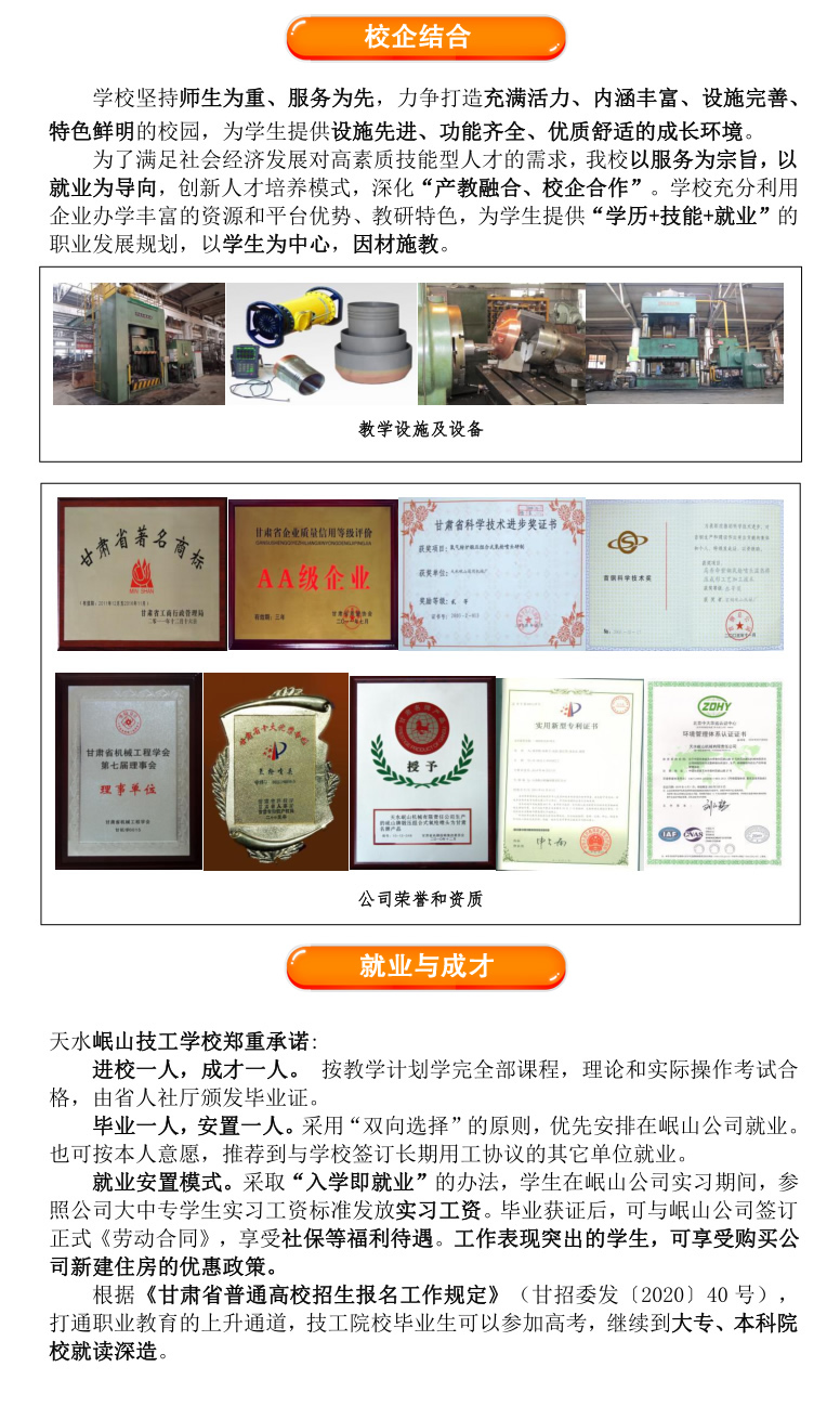 : 天水岷山技工學校2021年招生簡章