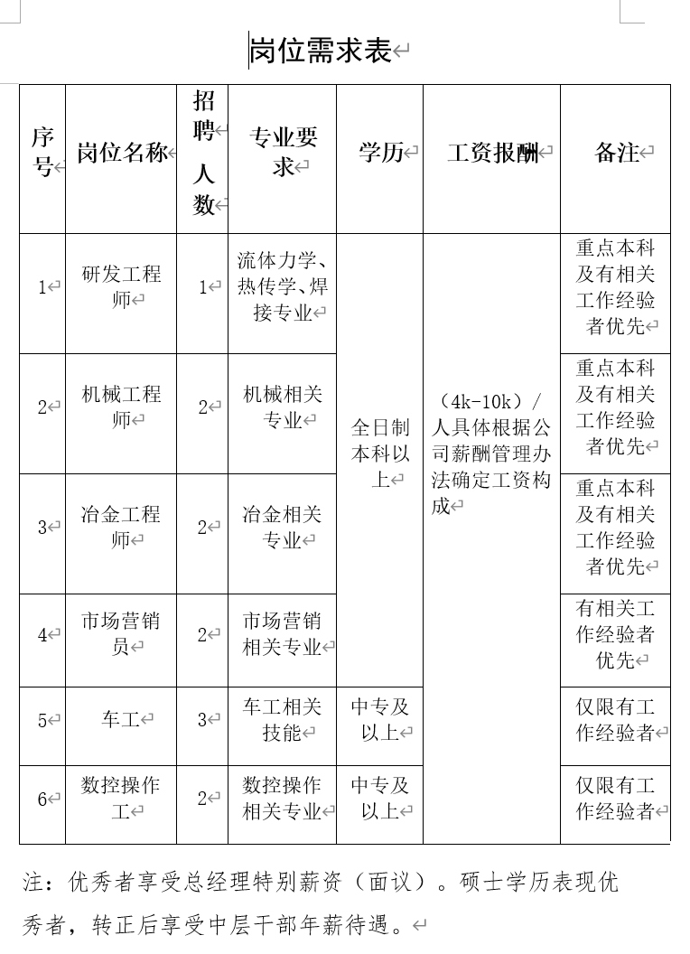 : 天水岷山機(jī)械有限責(zé)任公司崗位需求表