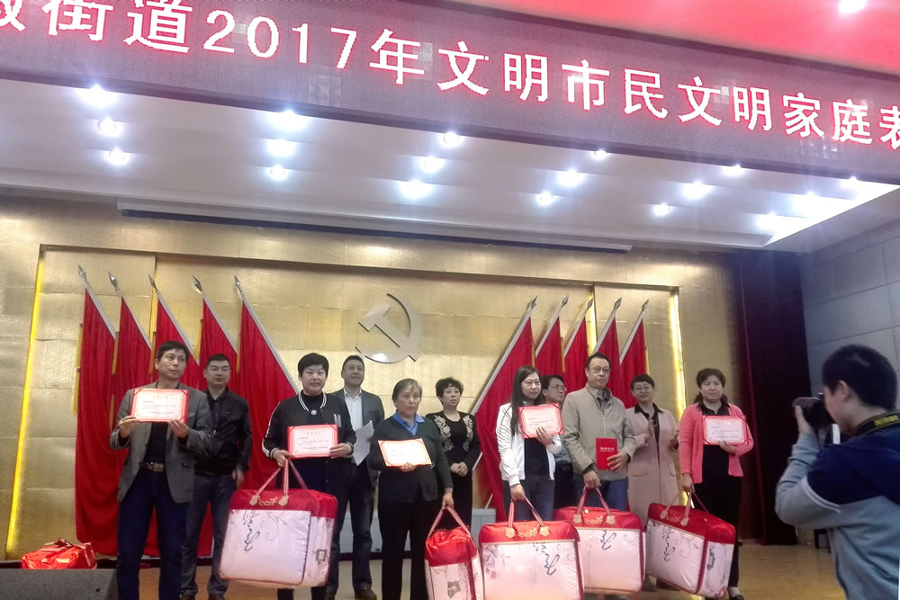 在喜迎建國68周年和黨的十九大即將召開之際,9月27日上午,七里墩街道辦事處在市委黨校禮堂舉辦“表彰文明家庭和文明市民暨慶國慶喜迎十九大,歡歌頌祖國”文藝匯演活動,表彰先進(jìn),選樹典型,唱響主旋律,匯聚正能量,一展全體干部職工、居民群眾積極向上,銳意進(jìn)取的精神風(fēng)貌,營造熱烈喜慶的文化氛圍。 文藝匯演前,辦事處對轄區(qū)各社區(qū)推薦評選的“文明市民、文明家庭”進(jìn)行了表彰。公司員工薛靖昌、張曉剛榮獲“文明市民”榮譽稱號,劉小紅榮獲“文明家庭”榮譽稱號。 |